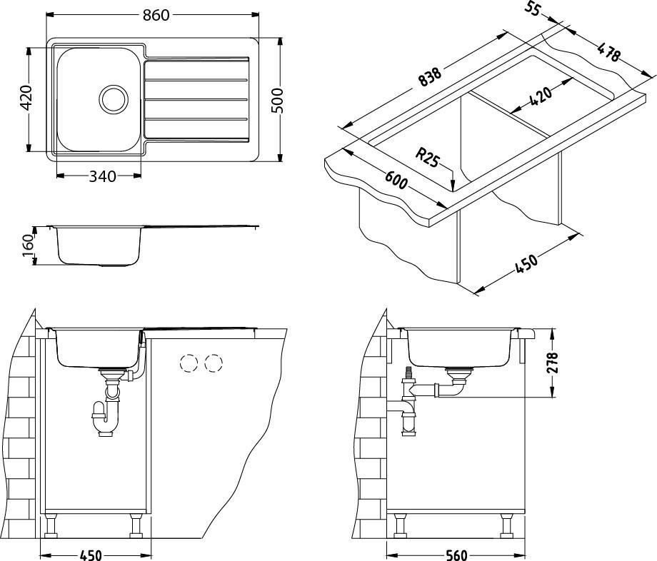 | Тип монтажа | Классические врезные кухонные мойки (I) |