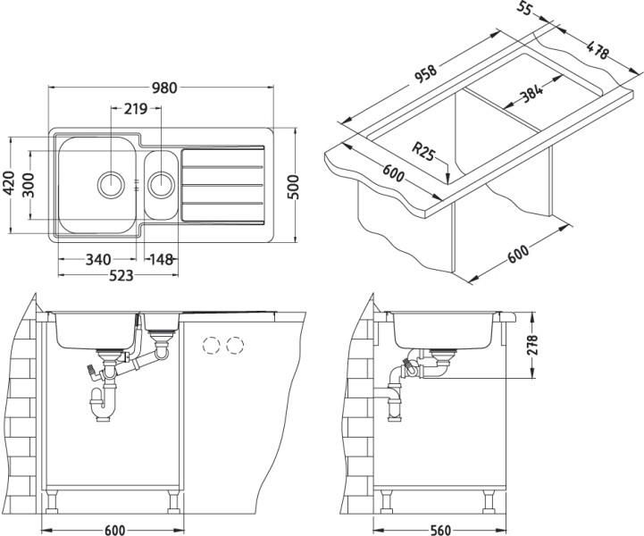 | Тип монтажа | Классические врезные кухонные мойки (I) |