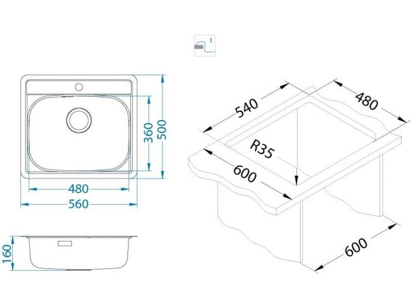 | Размер мойки | 560x500 |