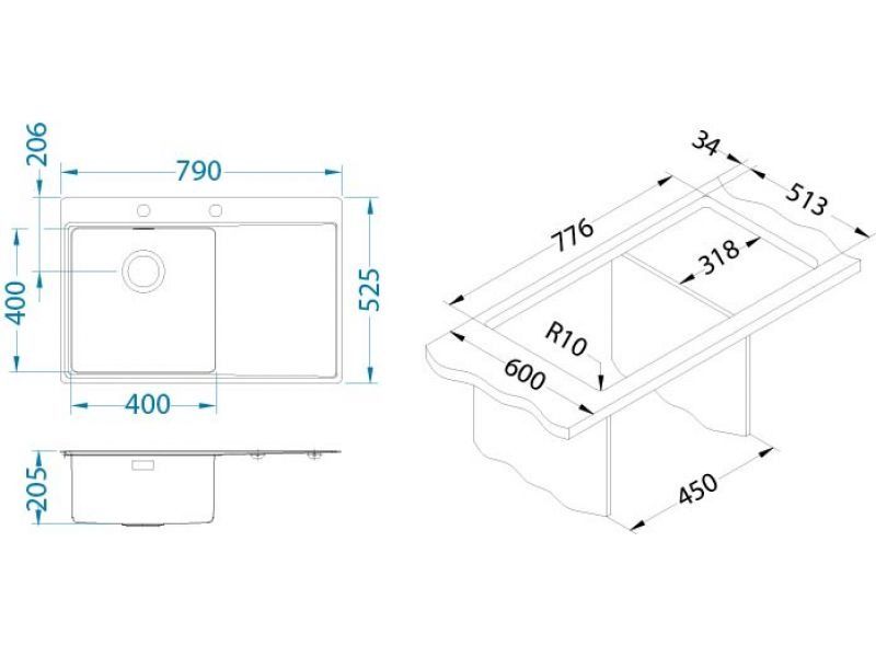 | Размер мойки | 790x525 |