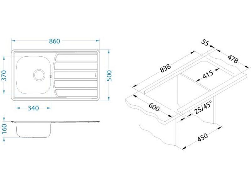 | Размер мойки | 860x500 |