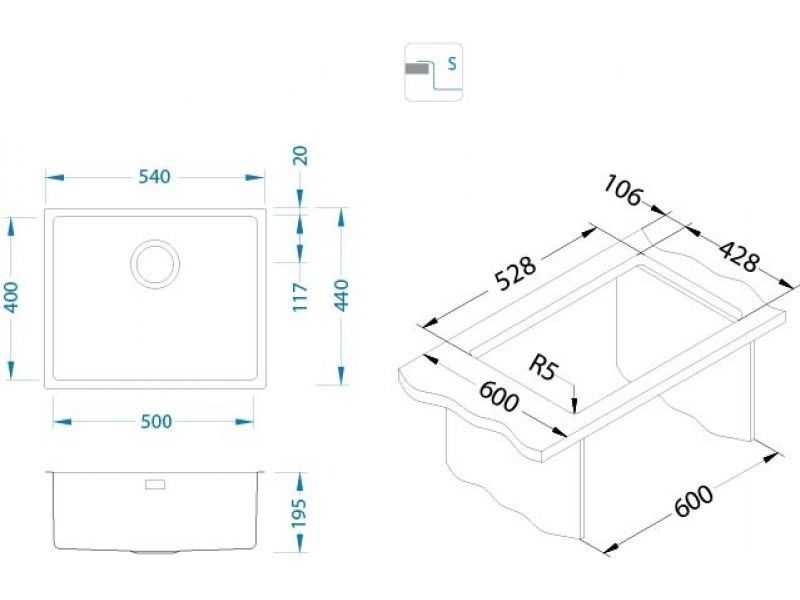 | Тип монтажа | Полностью врезные мойки (F) / Плоскостно-врезные мойки (S) |