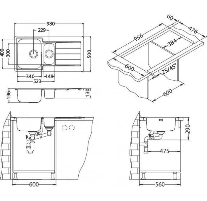 | Тип монтажа | Классические врезные кухонные мойки (I) |