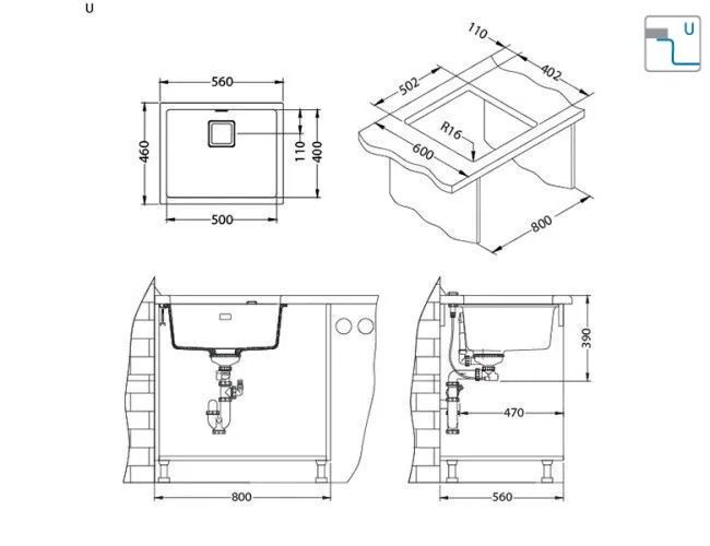 | Тип монтажа | Классические врезные кухонные мойки (I) / Чаши для монтажа под столешницу (U) |